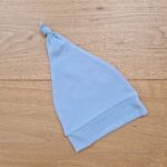 Bonnet de naissance bleu ciel en coton bio certifié GOTS.